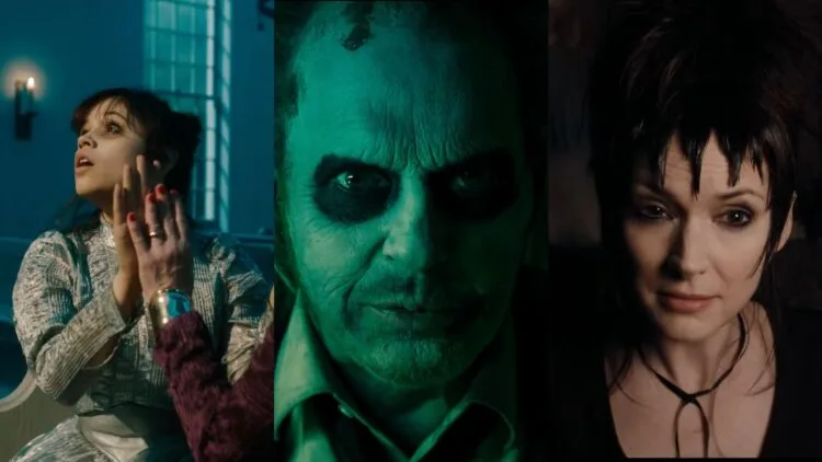 The story takes place 36 years after the original film, and three generations of the Deetz family return to Winter River, after Charles Deetz’s unexpected death, to say one last goodbye. But this time around, Lydia Deetz (played by Winona Ryder) is a widow and famous medium. Not only that – she has a daughter named Astrid Deetz (Jenna Ortega), a rebellious girl who wants to detach herself from the paranormal and eccentric life that her family is known for, mimicking the relationship Lydia had with her stepmother, Delia Deetz (played by Catherine O’Hara), when she was her age.
