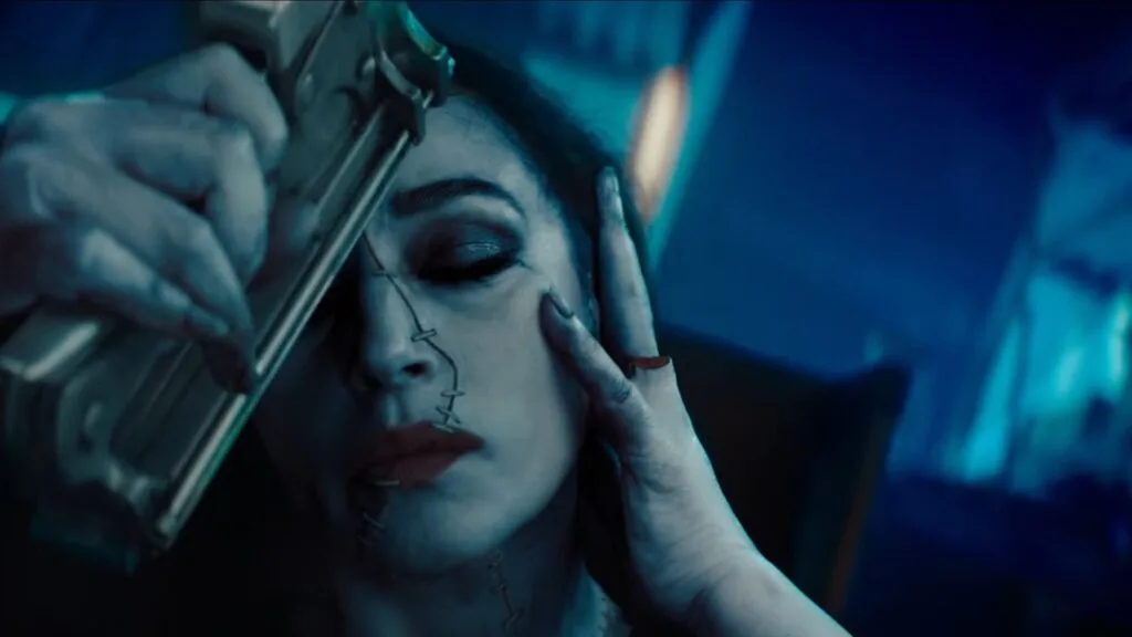 But once you move past that opening sequence, everything is fair game, and we get to enjoy Tim Burton’s brand of unapologetic, crazy comedy that plays everything from shark attacks to exploding guts and baby ghouls for laughs. One of the more exciting sequences of the film is when one of the big bads of the film, Delores (played by Monica Bellucci), comes back to life, stapling herself together in an incredible scene that, overall, re-emphasises the entire tone of the film as we revisit the land of the dead.