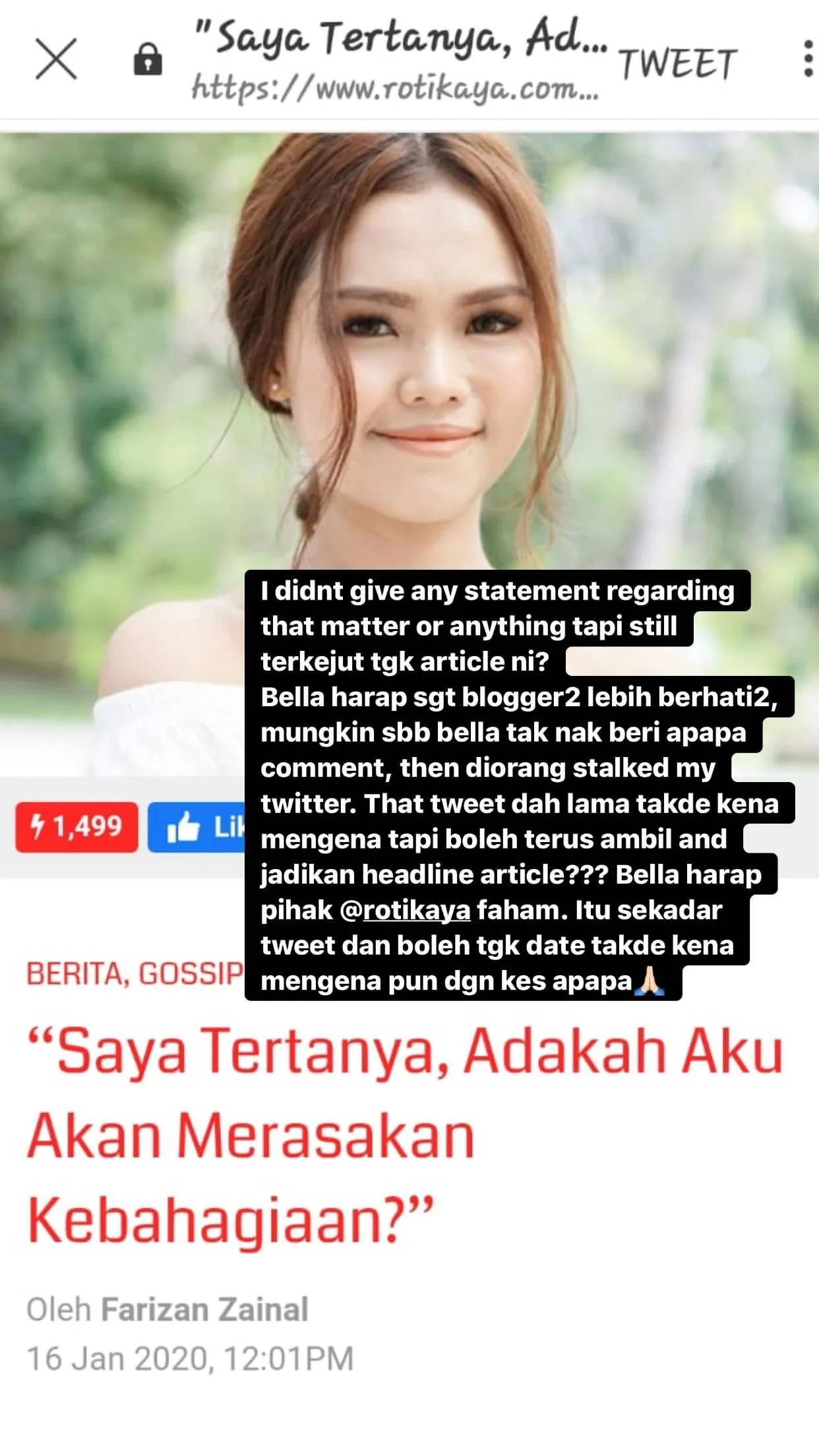 That tweet was from a long time ago and y’all decide to use it as your headline??? I really hope the people at RotiKaya will understand. That’s just a tweet and you can check the date, it has nothing to do with any cases whatsoever.”