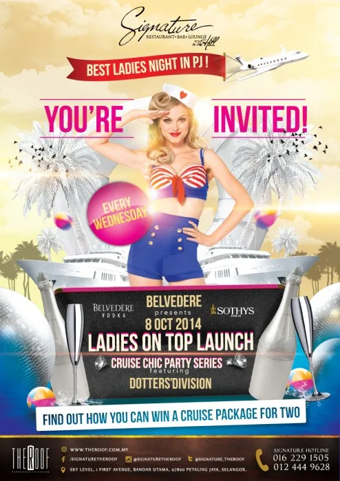 Together with Belvedere, Signature @ The Roof invites all you ladies to celebrate your inner cruise chic during the launch of its Ladies On Top (Cruise Chic Party Series).