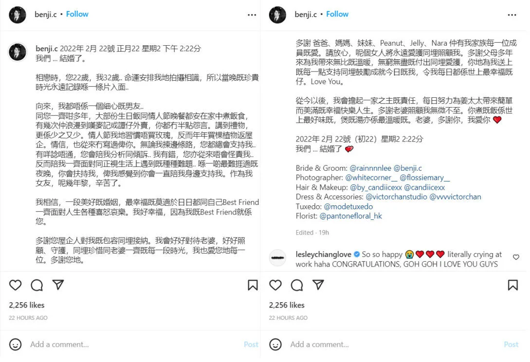 Benji and Rain purposely decided to release the news on 22 February 2022, exactly at 2:22pm. It’s not a coincidence, obviously. Benji explained that the number two was special to them. After all, they fell in love when Rain was 22 and Benji was 32. “Fate arranged for us to meet during filming, so the precious moment of that night will always be recorded in one piece,” he wrote in his post.
