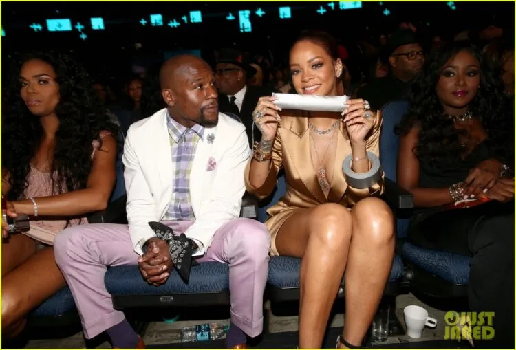Here's Rihanna duct taping Floyd Mayweather's mouth shut pic.twitter.com/FIdI5vhDzE