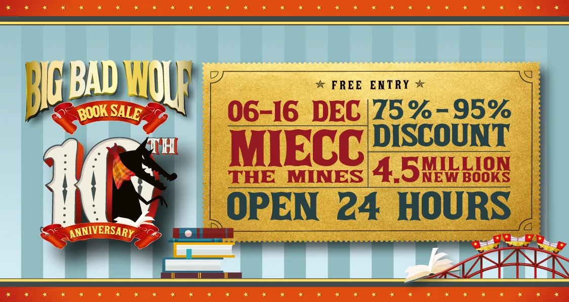 The Big Bad Wolf Book Sale is back with their 10th anniversary y’all! And this time, it will be held at the Mines International Exhibition & Convention Centre (MIECC) in The Mines. The 11-day event will be held on 6th December all the way to 16th December.