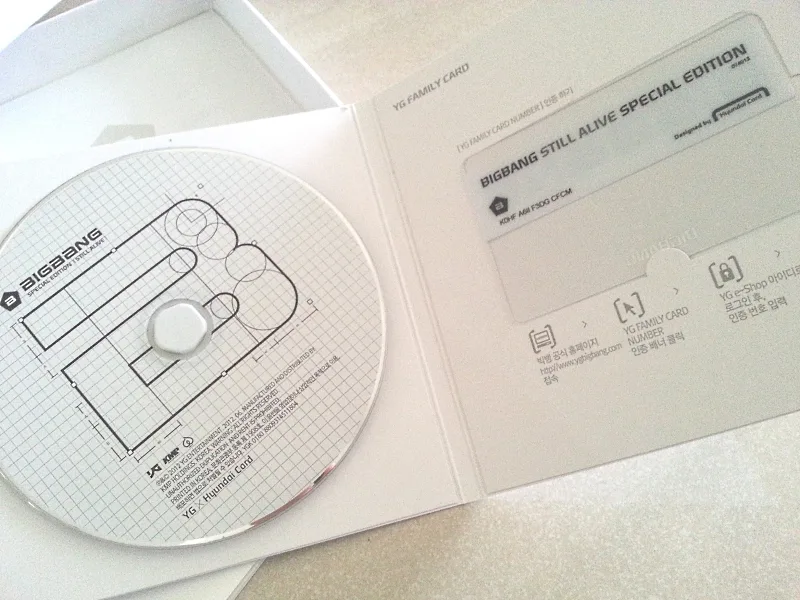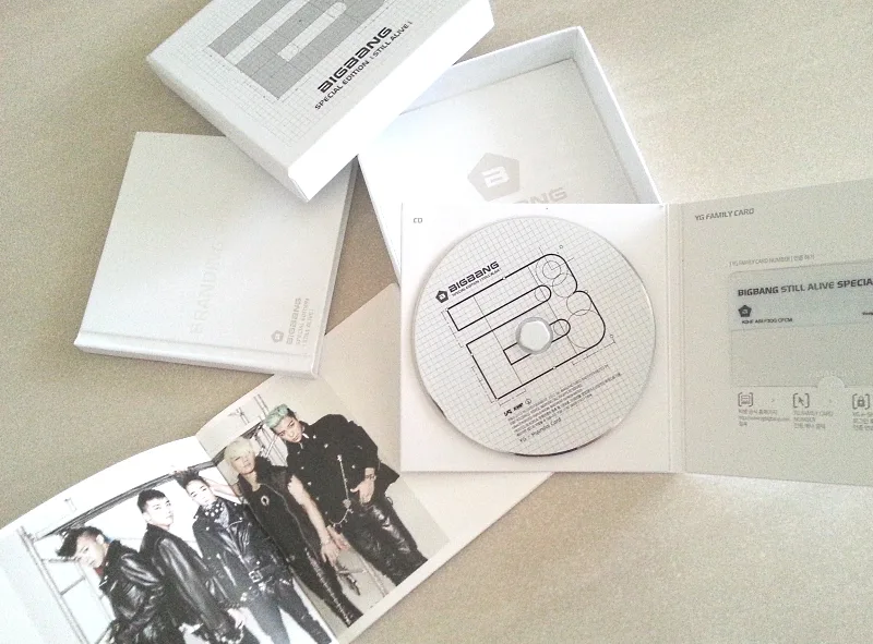 The white special edition “Still Alive” box comes with the “Still Alive” CD, a YG Family Card (YG is BIGBANG’s record label, also a talent agency), BIGBANG photo booklet, and a BIGBANG branding guide. It truly looks like a celebratory release!