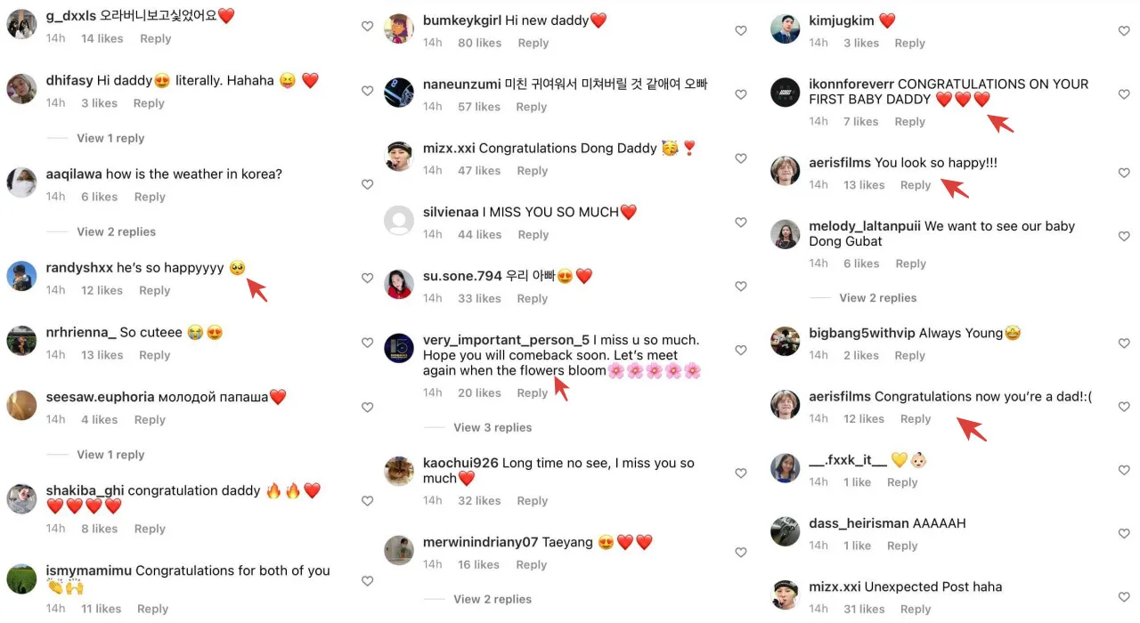 Many fans who have been missing the idol took to the replies space on his post to leave their warm wishes and also congratulatory remarks to the idol. In addition, there were also some who speculated on whether G-Dragon had met his BIGBANG teammate to congratulate him on his newborn baby boy. Speaking of BIGBANG, others also called for the YG Entertainment group to make a comeback soon.