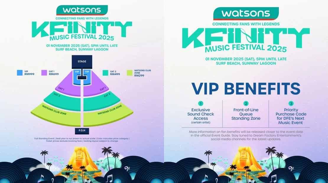 - Ticketing: RM299 (Watsons Club Zone), RM499 (CAT 2), RM699 (CAT 1), RM999 (VIP)