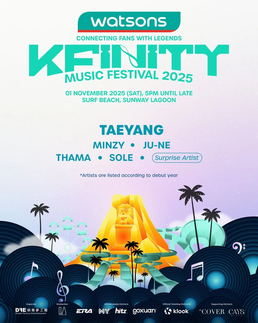 Yesterday (Thursday, 18th September), Dream Factory Entertainment unveiled the full details of the highly anticipated KFinity Music Festival 2025 on social media, describing it as “Malaysia’s biggest K-pop music festival”. As seen in the poster below, the announcement also confirmed the idols who will be part of the line-up: