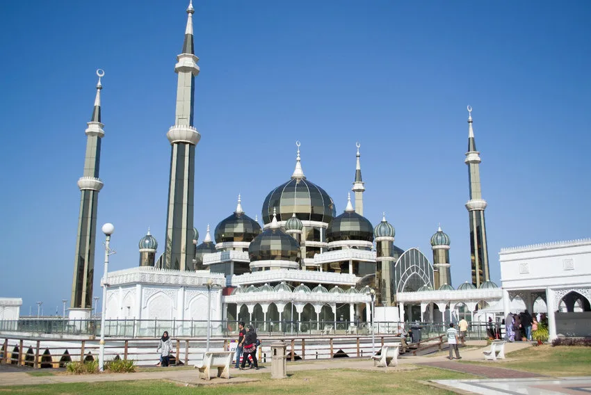 The Crystal Mosque is located in the Islamic Civilization Park, a tourist area, on Wan Man Island, Kuala Terengganu. It is built entirely out of glass and steel, the first “smart” mosque in Malaysia. The mosque is fully equipped with modern infrastructures such as Wi-Fi, that allows visitors to use the internet and read readily-available electronic Al-Quran.