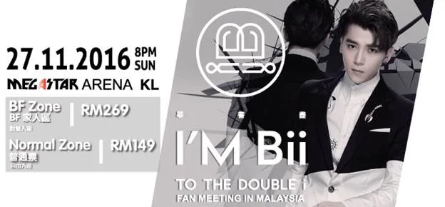 A RM4 processing charge will be charged for every ticket. “BF Zone” ticket holders will be able to get their hands on a “I AM Bii TO THE DOUBLE i” album and a limited edition souvenir. The first 200 “BF Zone” buyers will be able to get an exclusive group photo with Bii.
