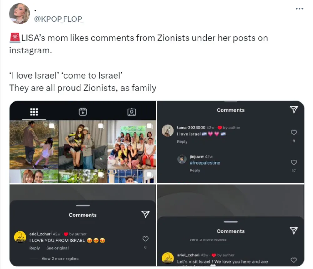 On the other hand, Lisa is getting backlash from K-pop fans for her mother’s Instagram activities. One Twitter user recently pointed out that Lisa’s mum, Chitthip Bruschweiler, has liked comments that show support for Israel. Her likes raise arguments that the Thai idol’s family are supportive of Zionist activities. However, it’s worth noting that Chitthip also likes comments from other fans, and it’s unlikely that her actions demonstrate her political stance.