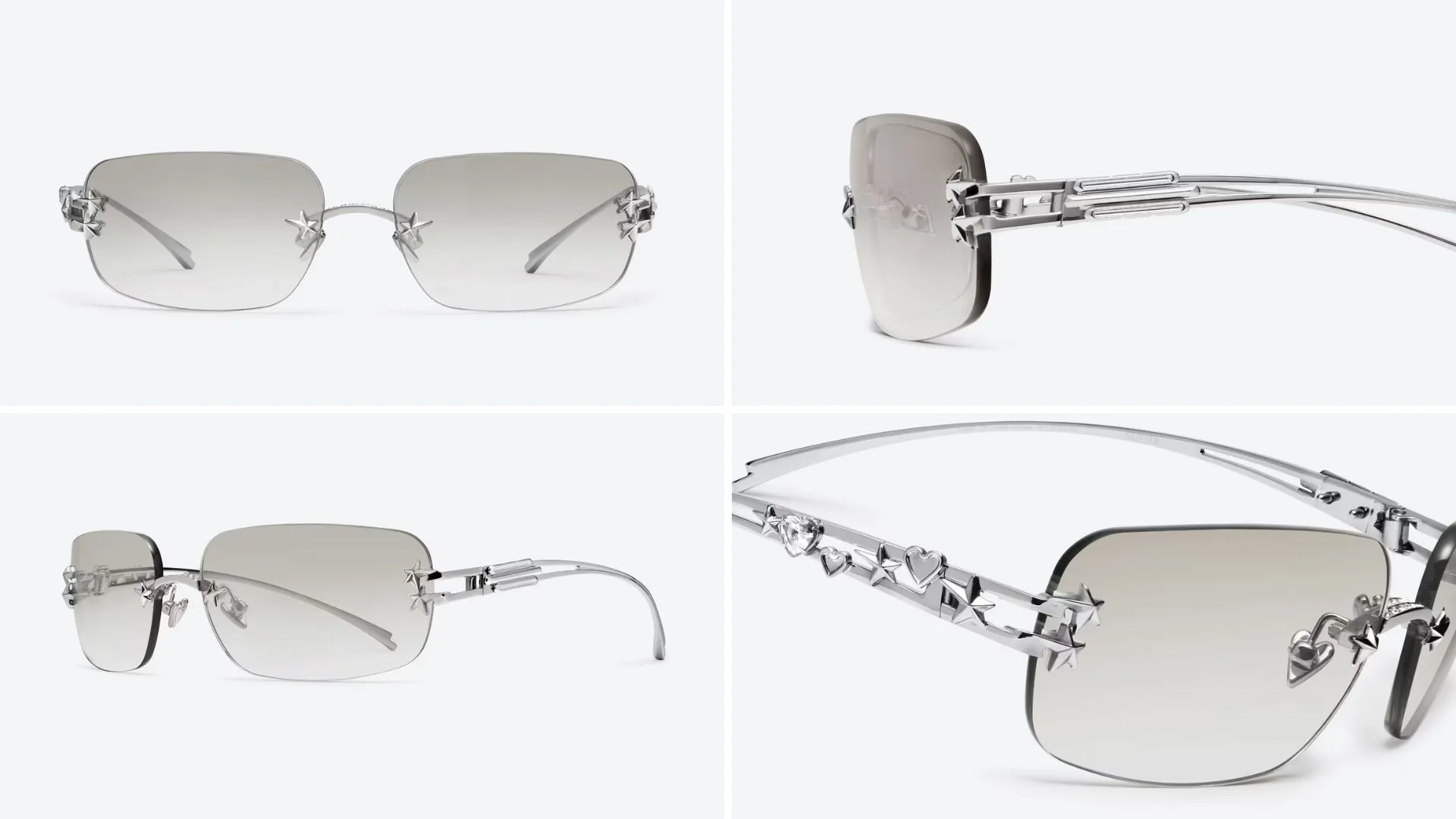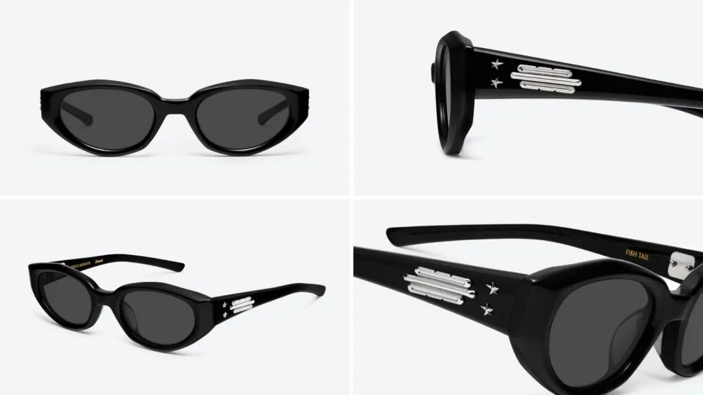 The Fish Tail sunglasses start off with a simple yet elegant design, heavily influenced by the shape of a butterfly. Featuring a singular colour, the frame creates a captivating blank canvas that is meant to further enhance the user’s facial features. However, charms can be used to add a touch of colour, which adds to the overall appeal.