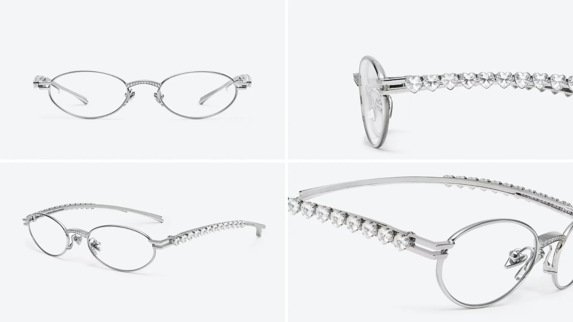 For those who want to add some sparkle to their lives, look no further than the Barrette design. The unique oval-round shape complements the silver metal frame, creating a sophisticated look, while its hairpin-inspired temple design exudes playful creativity. This delicate balance enables it to be worn as an everyday pair or as a dazzling art piece at the most prestigious formal gatherings.