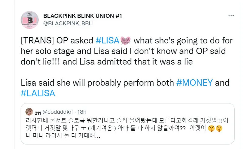 During the fansign event, Lisa gave a glimpse on what BLINKs can expect on their upcoming concert tour. One lucky BLINK at the fan meeting asked the Thai idol on whether she’s going to perform her solo songs at the concert. “I slyly asked Lisa which solo tracks she’ll be performing at the concert, and she said she didn’t know. Then I told her, ‘You’re lying’, to which she confessed that it was a lie (she’s so cute). She said, ‘I’ll probably do both?’ I’m looking forward for both ‘Lalisa’ and ‘Money’,” the fan wrote on Twitter.