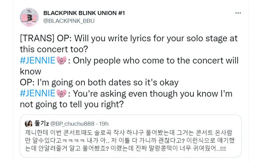 Meanwhile, another fan who attended the event asked Jennie on whether she’ll sing “Solo” at this upcoming world tour. The “Pink Venom” singer then told the fan, “Only people who come to the concert will know.” The fan then said, “I’m going for both concerts so it’s okay,” to which Jennie responded by saying, “You’re asking even though you know I’m not going to tell you, right?”