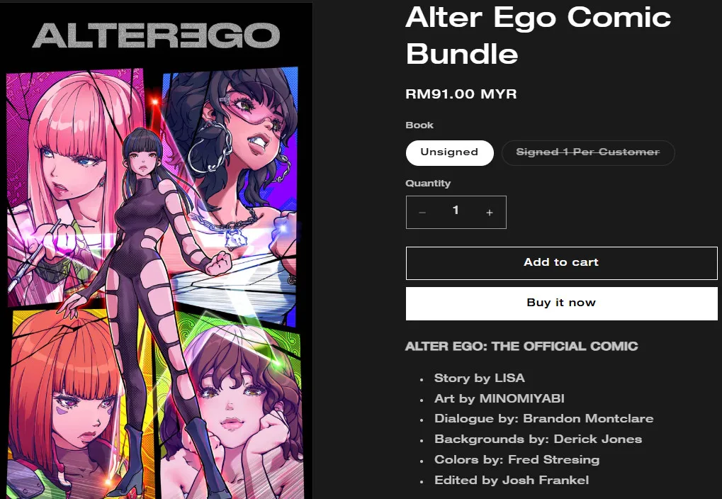 Speaking of promotion, Lisa recently launched Lalisa Comics in partnership with Zero Zero Entertainment to accompany her debut solo album, “Alter Ego”. The new company will release a 56-page graphic novel titled “Alter-Ego: The Official Comic”, authored by Lisa herself and illustrated by MINOMIYABI. The comic is now available for purchase and will be shipped out to customers a month after the release of the idol’s album.