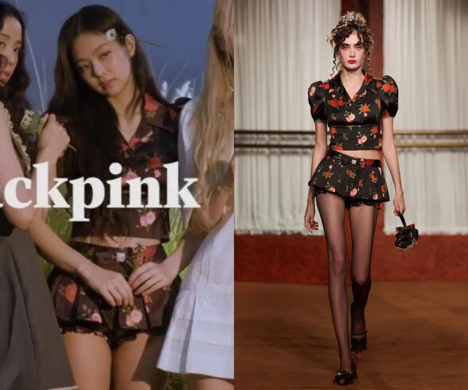 Jennie also wore the Sandy Liang S/S 2023 piece straight off the runway. She magnificently pulled off a sexy bandeau top worth 1450 USD (~RM6382.90), which was worn underneath a see-through black dress. The “Solo” singer also added a trendy touch with a piece silk scarf wrapped around her neck, apart from wearing a pair of leg warmers. Additionally, Jennie also wore a two-piece floral outfit from Shushu/Tong.