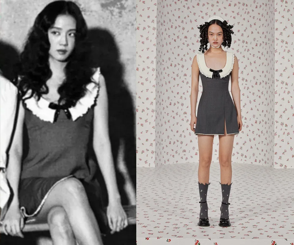 Last but certainly not least, Jisoo can be seen rocking a beaded gray mini dress from Shushu/Tong’s Fall/Winter 2022 worth 665 USD (~RM 2,927.33). The super cute outfit also features a frilly collar and a little black bow, exuding old-school preppy vibes, which certainly goes well with the “Snowdrop” actress’ image. With Jisoo’s hair styled in romantic curls, the overall look for the shoot is totally unmatched!