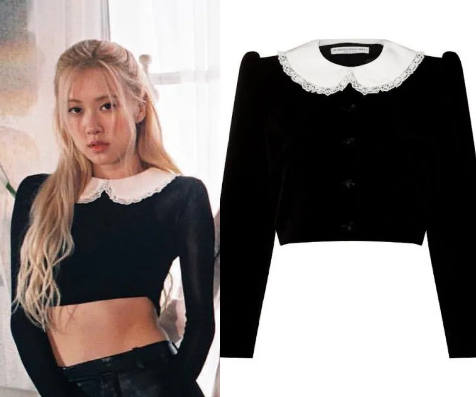 Rosé was clad in a white babydoll dress from Sandy Liang’s latest collection, boasting a feminine and pure image for this magazine shoot. The “On The Ground” singer also sported a cropped black blouse from Alessandra Rich. The highlight of the outfit is none other than the white lace collar, giving off a timeless look.