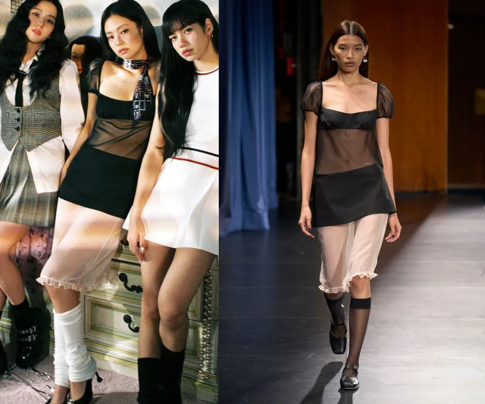 Jennie also wore the Sandy Liang S/S 2023 piece straight off the runway. She magnificently pulled off a sexy bandeau top worth 1450 USD (~RM6382.90), which was worn underneath a see-through black dress. The “Solo” singer also added a trendy touch with a piece silk scarf wrapped around her neck, apart from wearing a pair of leg warmers. Additionally, Jennie also wore a two-piece floral outfit from Shushu/Tong.