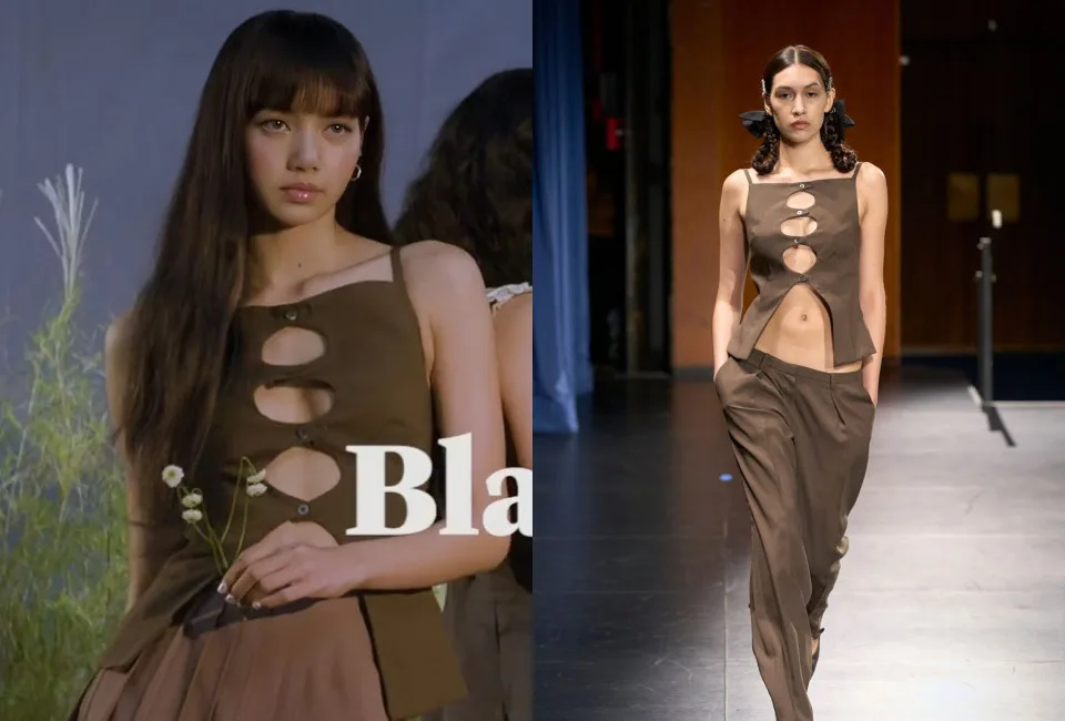 Out of all the outfits worn by the BLACKPINK members, Lisa’s outfit is hands down one of our favourites! The Thai idol sizzled in a brown top with a circle cut-out from Sandy Wang’s Spring/Summer 2023 Collection. She also wore a brown high-waisted skirt to give off a more elegant vibe to her overall look.