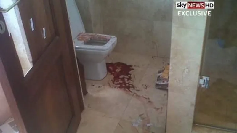 The photo of the bathroom shows a toilet covered in blood, a door with a missing panel and what appear to be two police-marked bullet holes below the level of the door’s handle. CNN has not been able to independently confirm the authenticity of the photos, and police spokesman Brigadiere Phuti Setati declined to comment on how Sky News obtained the pictures.
