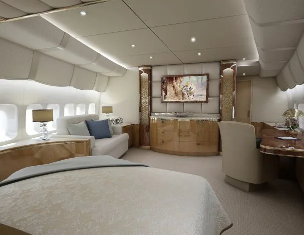 What a big step up this is, from the standard private jet to a personalised Boeing 747-8.