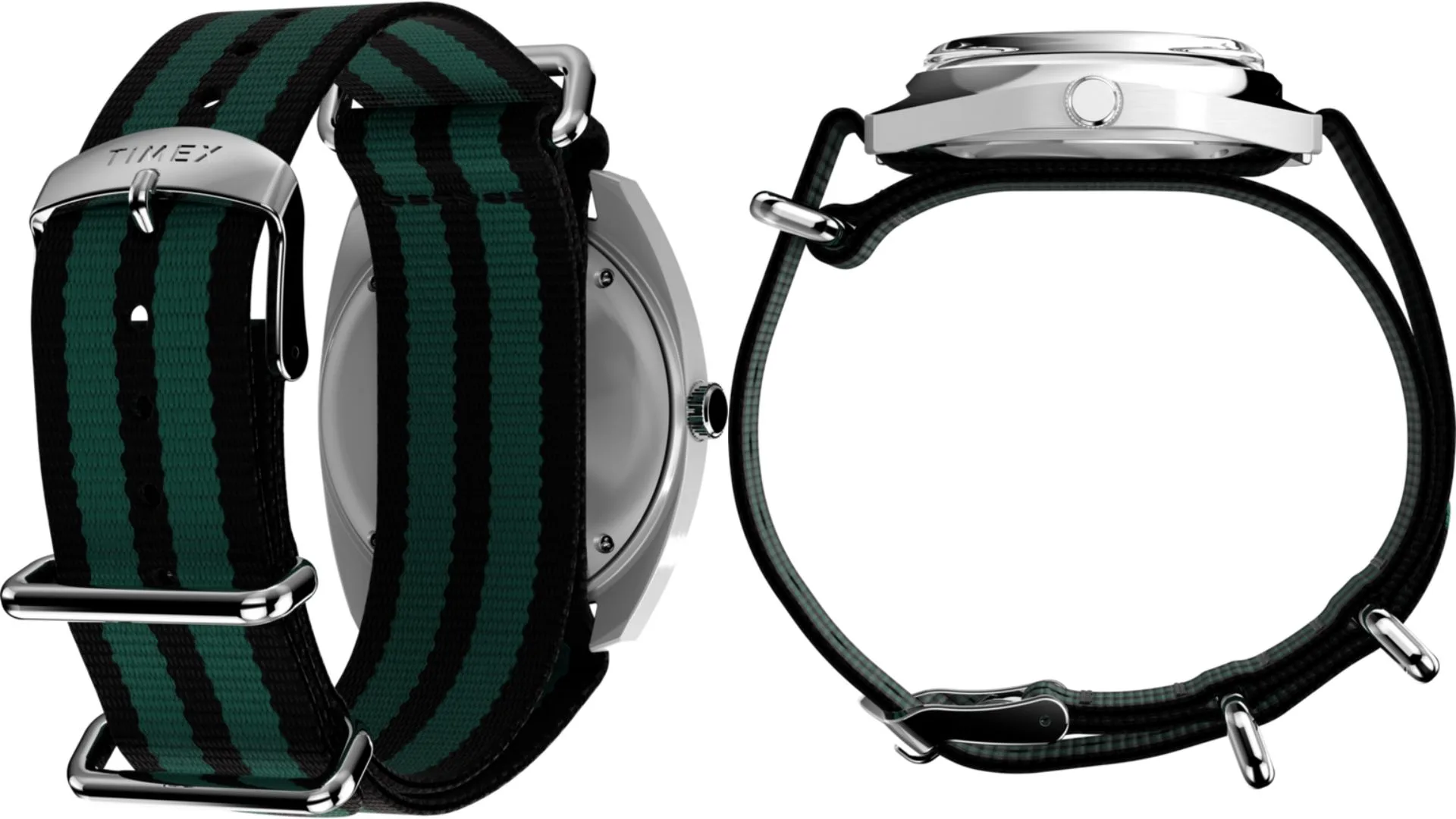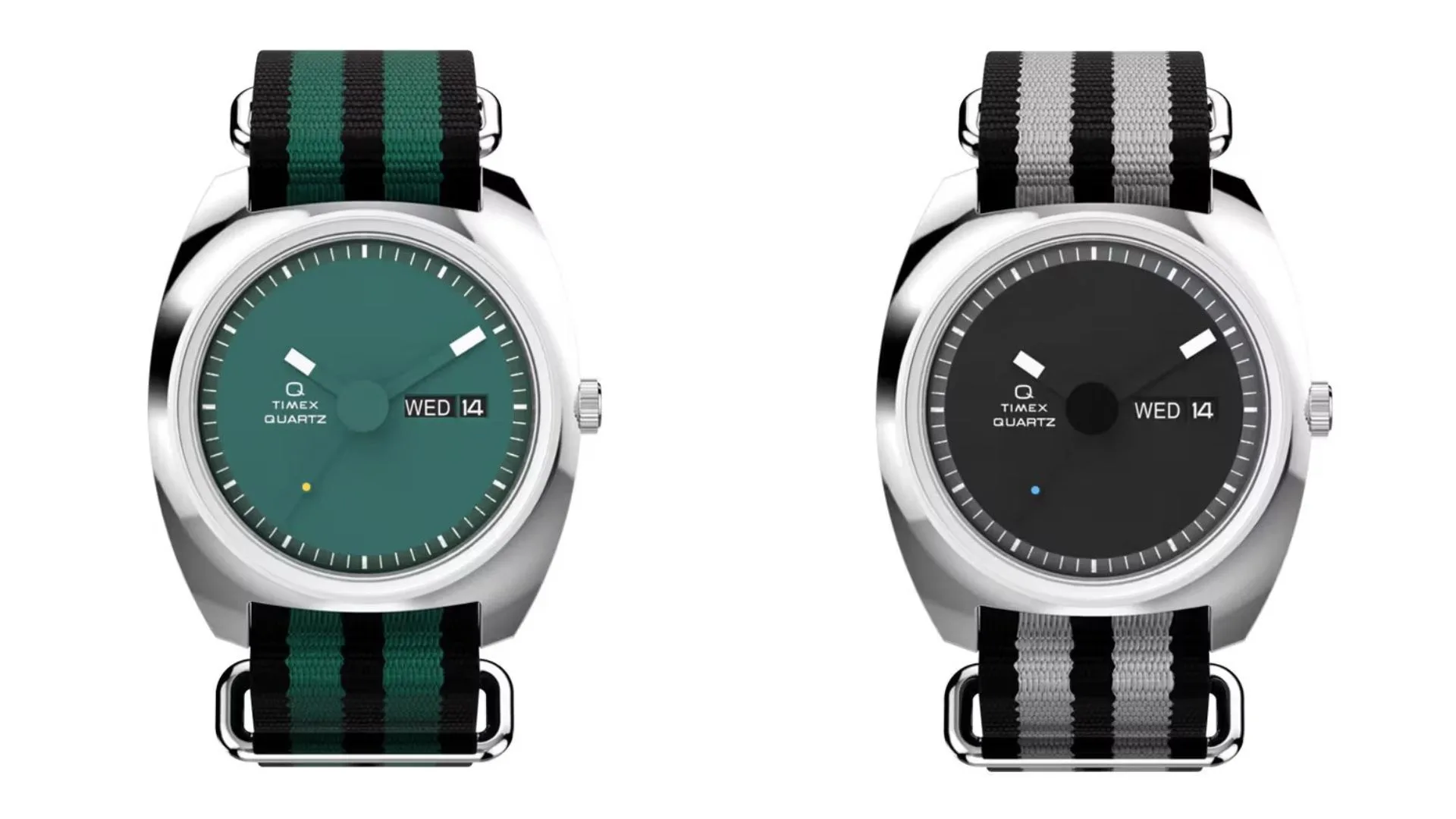 The watch hands, which are available in two colours – black and green – have a tonal hue that nearly perfectly complements the dials.