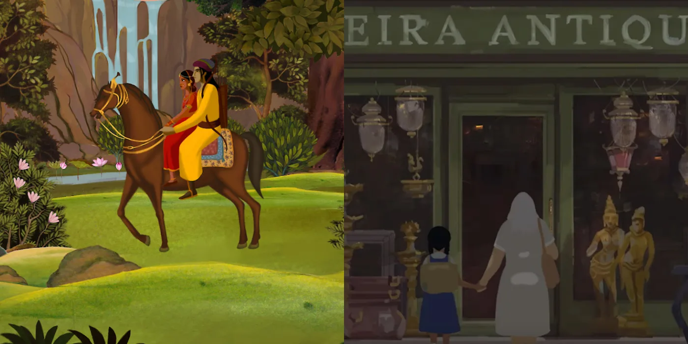 Through the medium of animation, Rao depicts these two separate views on life in Bombay with magnificent visual flair and breath-taking clarity. The film is brought to life by 60 artists and animators, all tied by Rao’s unique artistic direction. “Bombay Rose” seamlessly transitions from the gritty earthen colours and sights of the streets into the bright and vibrant shades of a royal tapestry of Kamala’s eye. One where every shade is more pronounced and the fantastical becomes possible. There were moments in which we had to pause the film to drink in everything we saw. The landscape of Tara’s world shifts and changes into the old postcards and sketches of the idyllic European towns. Completed with lined rail cars and Mary Poppins like mentors to show her the ropes.