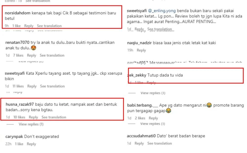 Netizens, however, are not entirely convinced about the product’s efficiency. Moreover, they also expressed their dissatisfaction with the way DS Vida promoted the product. Many did not hold back and criticised the celebrity mother for showing off the shape of her body in a dress they believe to be tight, contradicting her own words. Others suggested that her daughter Cik B should try it as a testimony.