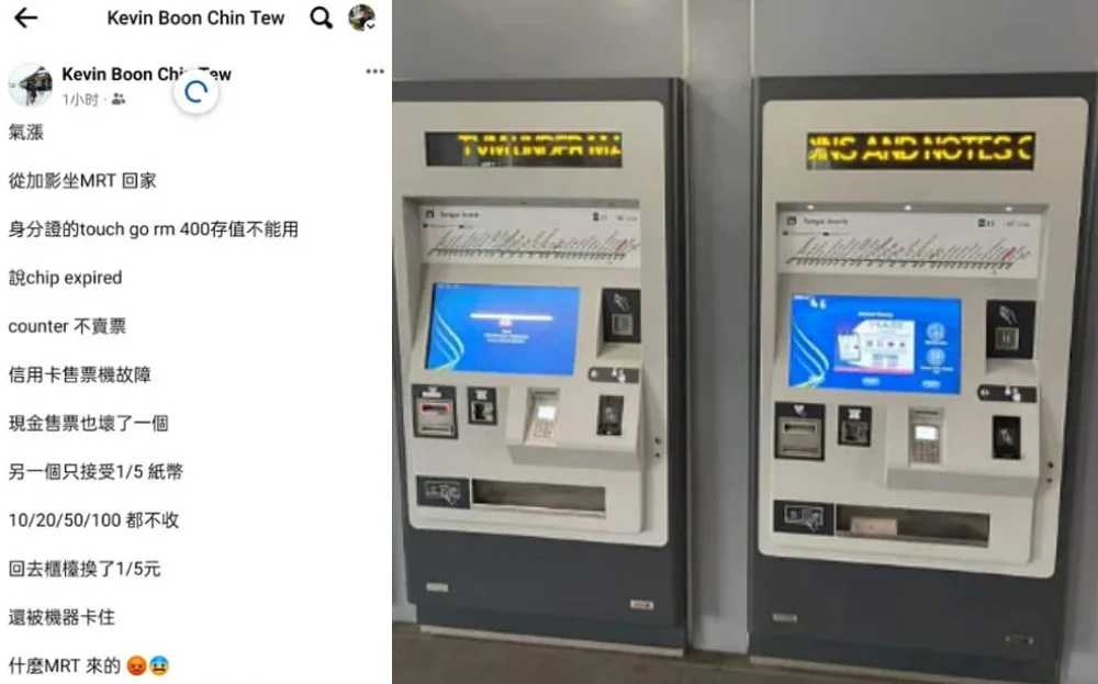“The ticket machine (which accepts) credit cards (was) malfunctioning. One of the machines (accepting cash) was also broken. The other only accepts RM1 and RM5 notes,” he recounted. He went back to the counter to get some change, but the machine ended up eating his money. Thankfully, a staff member helped him regain some of his cash and got him the ticket. He was still short of RM1, but as he was in a hurry and tired, he decided to let the matter go.