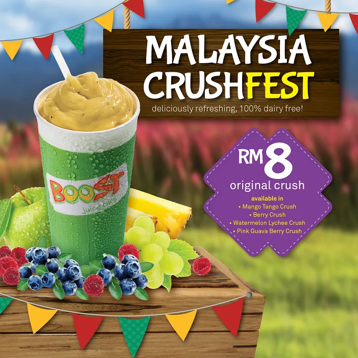 Then prepare to rush off to the nearest Boost Juice outlet as they are offering some of their original dairy-free crushes at only RM8!