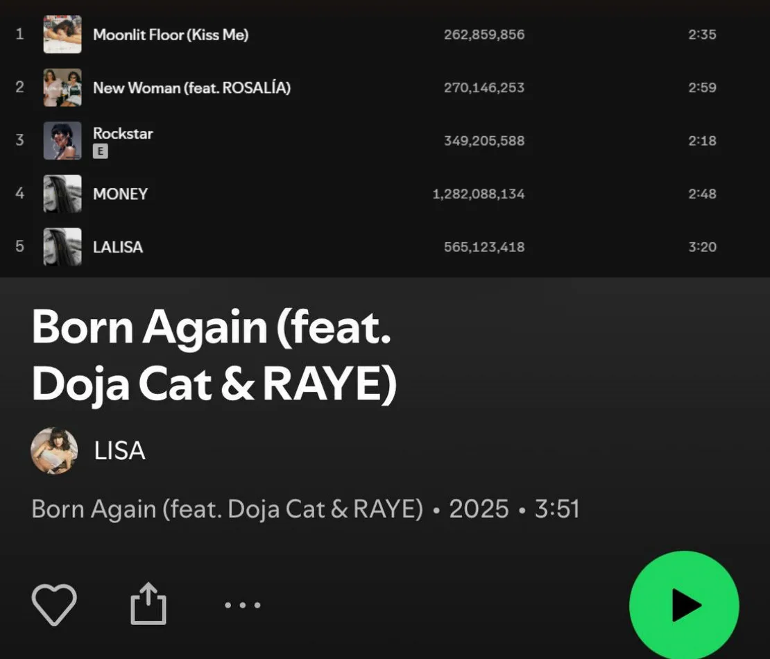 Prior to “BORN AGAIN”, every single release, including “MONEY”, has been under 3 minutes. The new song is 3 minutes and 51 seconds long, making it the idol’s longest solo track after “LALISA”, which was 3 minutes and 21 seconds.