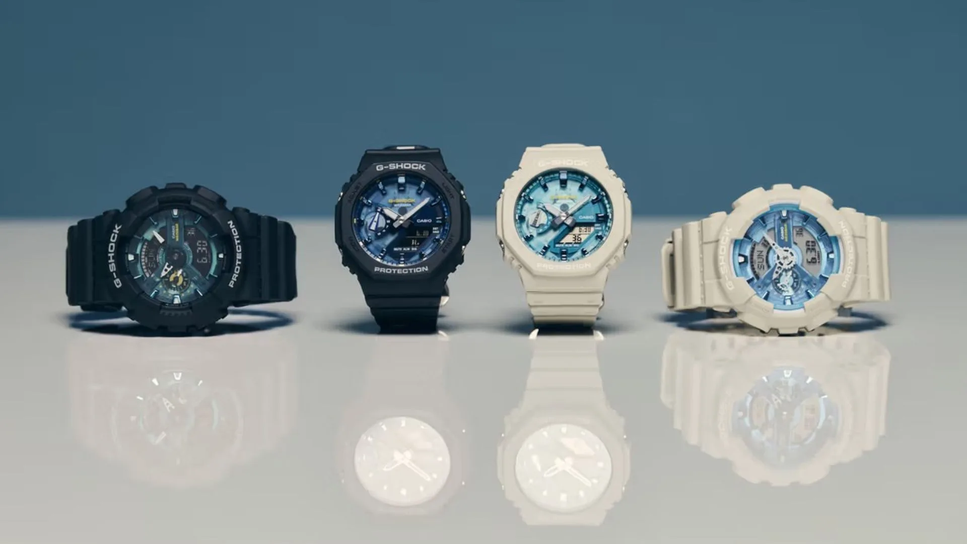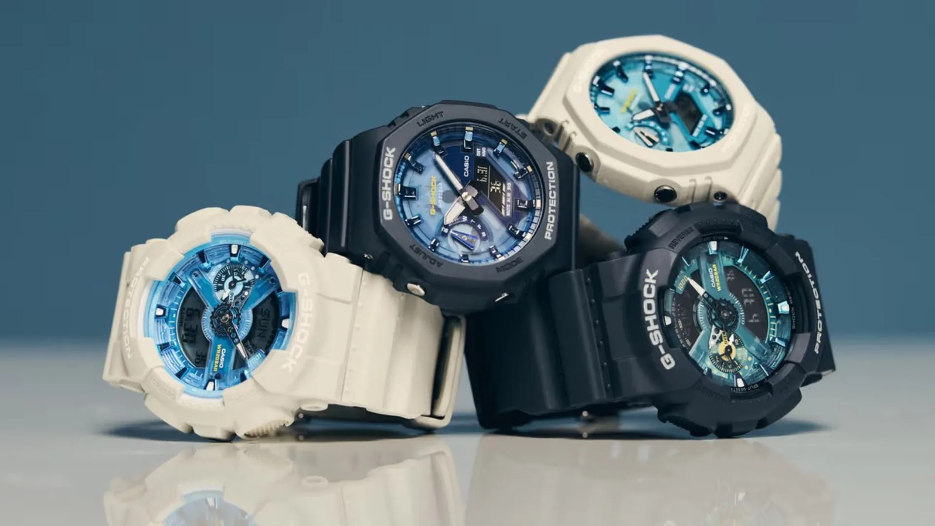 The blue and white colourways of the GA-2100AS-2A, GA-2100AS-5A, GA-110AS-2A, and GA-110AS-5A are all part of the Oasis collection.