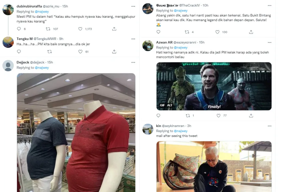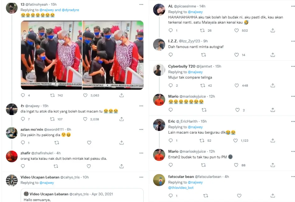 As seen in the video posted by Twitter user @najwey, Adam spontaneously used his hands to measure the size of his belly before bringing his hands close to the prime minister’s stomach to make a repeated comparison. Ismail Sabri appeared looking puzzled for a while, before he eventually became aware of what the kid was trying to do.