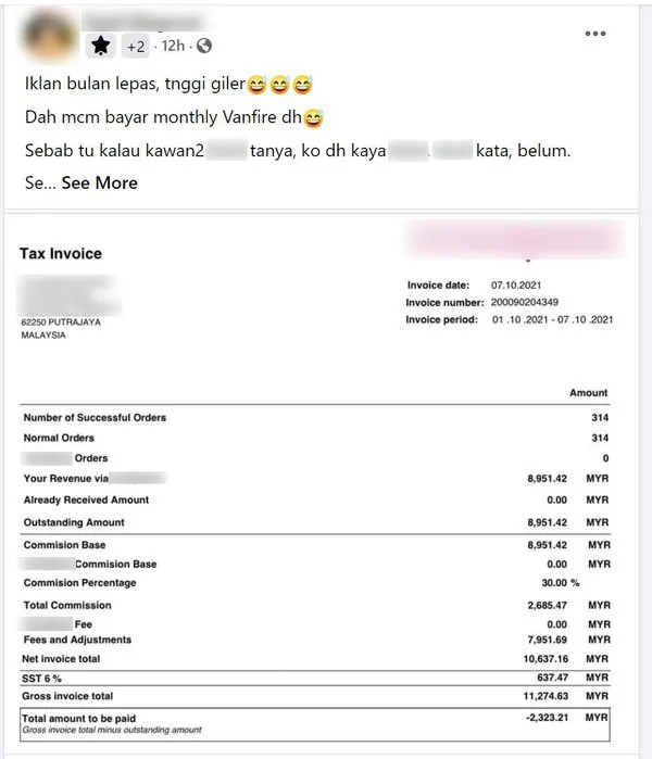 One entrepreneur in particular felt cheated. According to his tax invoice, he had actually made nearly RM9000 from sales alone. However, he did not receive a single cent. Additionally, the service’s commission for advertising and additional fees cost him roughly RM11,200. As a result, he gained nothing and ended up owing the service about RM2,300 in total.