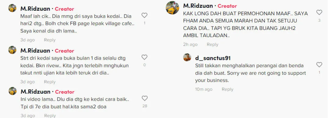 He added that this was an old video, taken before the fiasco at 7-Eleven. “Before this, she was always well-behaved at the shop. But at 7-Eleven she (made a commotion),” Ridzuan wrote. The shop owner acknowledged that she had made a mistake. However, he also emphasised that she had already apologised for the incident. “I understand you are all angry and not agreeable with her ways, but we should throw away the bad. Take (note),” he stated.