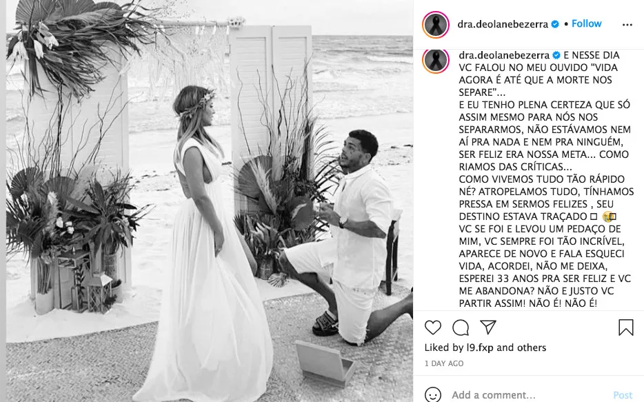 “You left and took a piece of me, you were always so incredible … I waited 33 years to be happy and you abandoned me? It is not fair you left like this! It is not! It is not! My love,” the post translates.