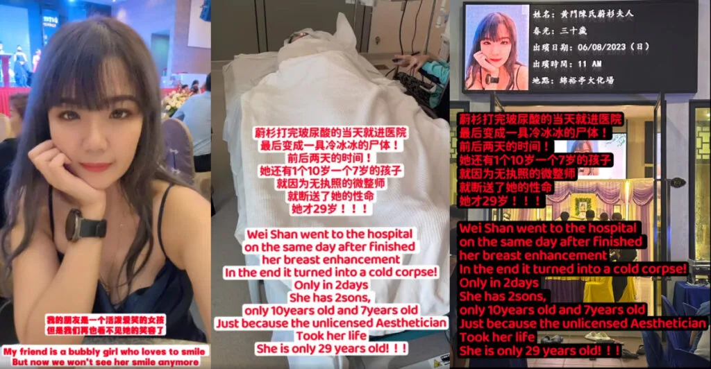 News of Wei Shan’s unexpected passing had devastated those who knew her as last they knew, she had been perfectly healthy. Unfortunately, it turns out that Wei Shan recently underwent a breast augmentation surgery from an unlicensed beautician in Johor.