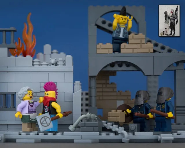 So much so that even photographers have found good uses for the minifigs and LEGO bricks. Case in point, internationally acclaimed photographer Jeff Friesen. By using LEGO bricks, he recreated well-known and controversial street artist Banksy’s famous art pieces: