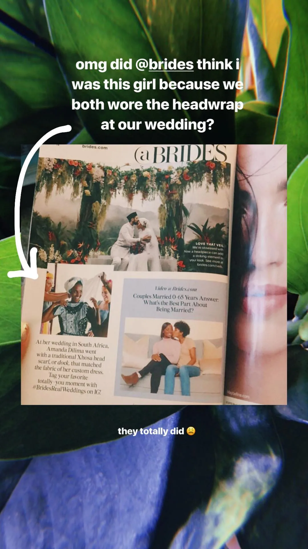 It would seem that American bridal magazine BRIDES have somehow mistaken Malaysian singer Yuna to South African retail leasing consultant Amanda Dilima in one of the stories in its magazine.