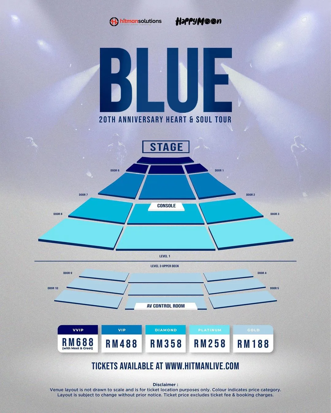 Ticketing: RM688 (VVIP), RM488 (VIP), RM358 (DIAMOND), RM258 (PLATINUM), RM188 (GOLD)