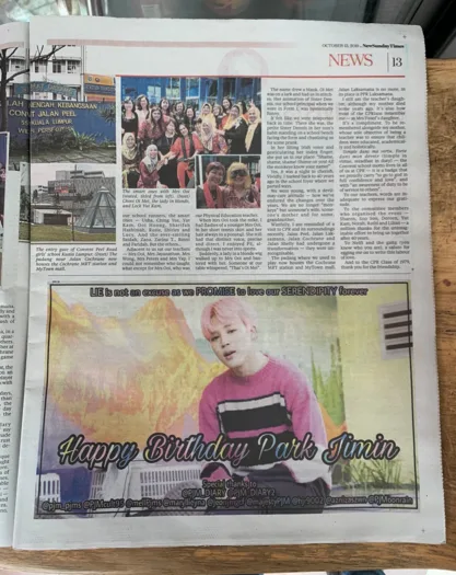 The boy group member reportedly became the first and only Korean to have a birthday support in a local newspaper. For those who missed it, his handsome face graced the page of New Straits Times yesterday (Sunday, 13th October).