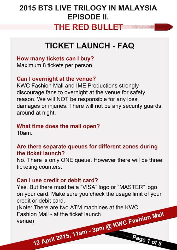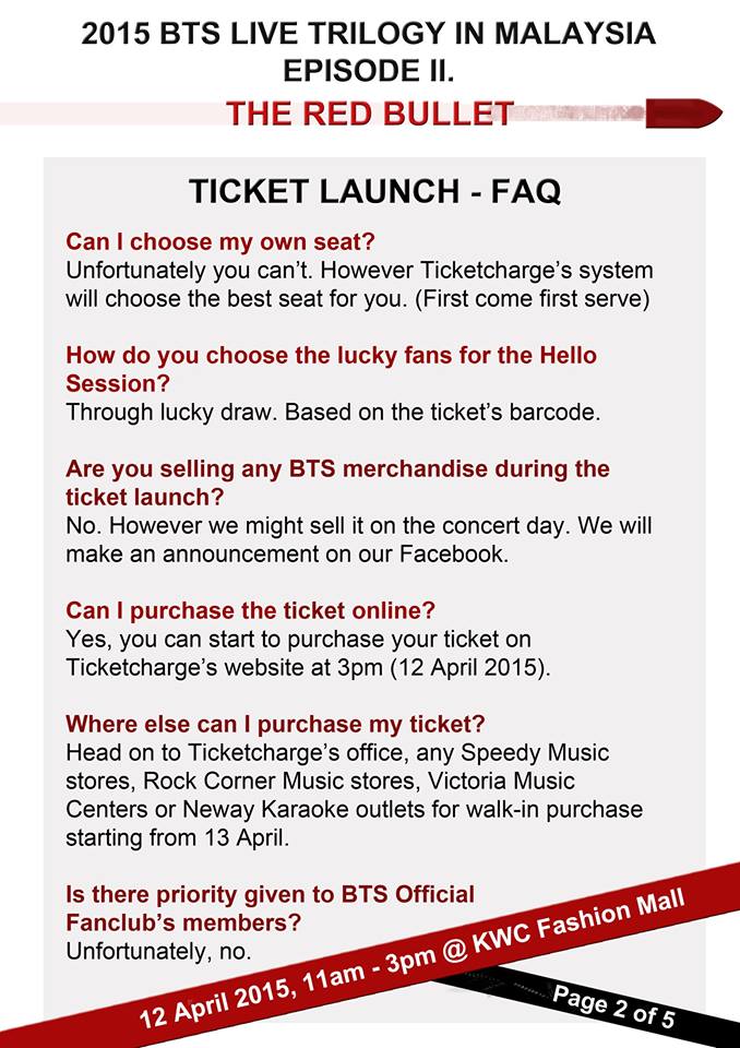 Titled “2015 BTS Live Trilogy In Malaysia – Episode II: The Red Bullet”, the concert is set to be held at Mega Star Arena in June. However, IME Productions, the lead promoter of the concert, did not announce the concert date.