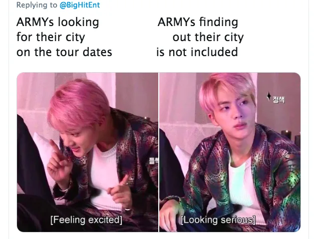 Understandably, many fans can relate to the meme pictured above. There’s been a lot of talk of BTS visiting Southeast Asia (particularly Malaysia) since last year. Hopefully someone makes good on their word.