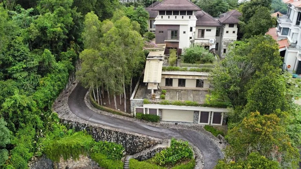 Other than offering a picturesque panoramic view from the peak of a hill, it also includes a basement garage that stores up to 12 cars, a surau, jacuzzi, sauna, swimming pool, and a 24-hour security system. The basement garage also comes with 2 bedrooms and bathroom for the driver and technician, along with a car wash area.
