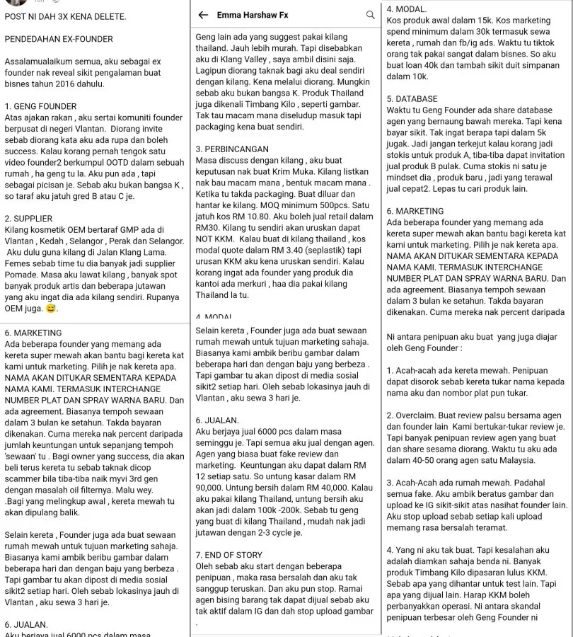 - Sales: The former founder revealed that her agent helped forge fake reviews and marketing in order to attract and convince customers into buying her products. She made a gross profit of RM90k and a net profit of RM40k. She said she would have made more if she used a Thai factory which explained why it was easy for some to become millionaires virtually overnight.