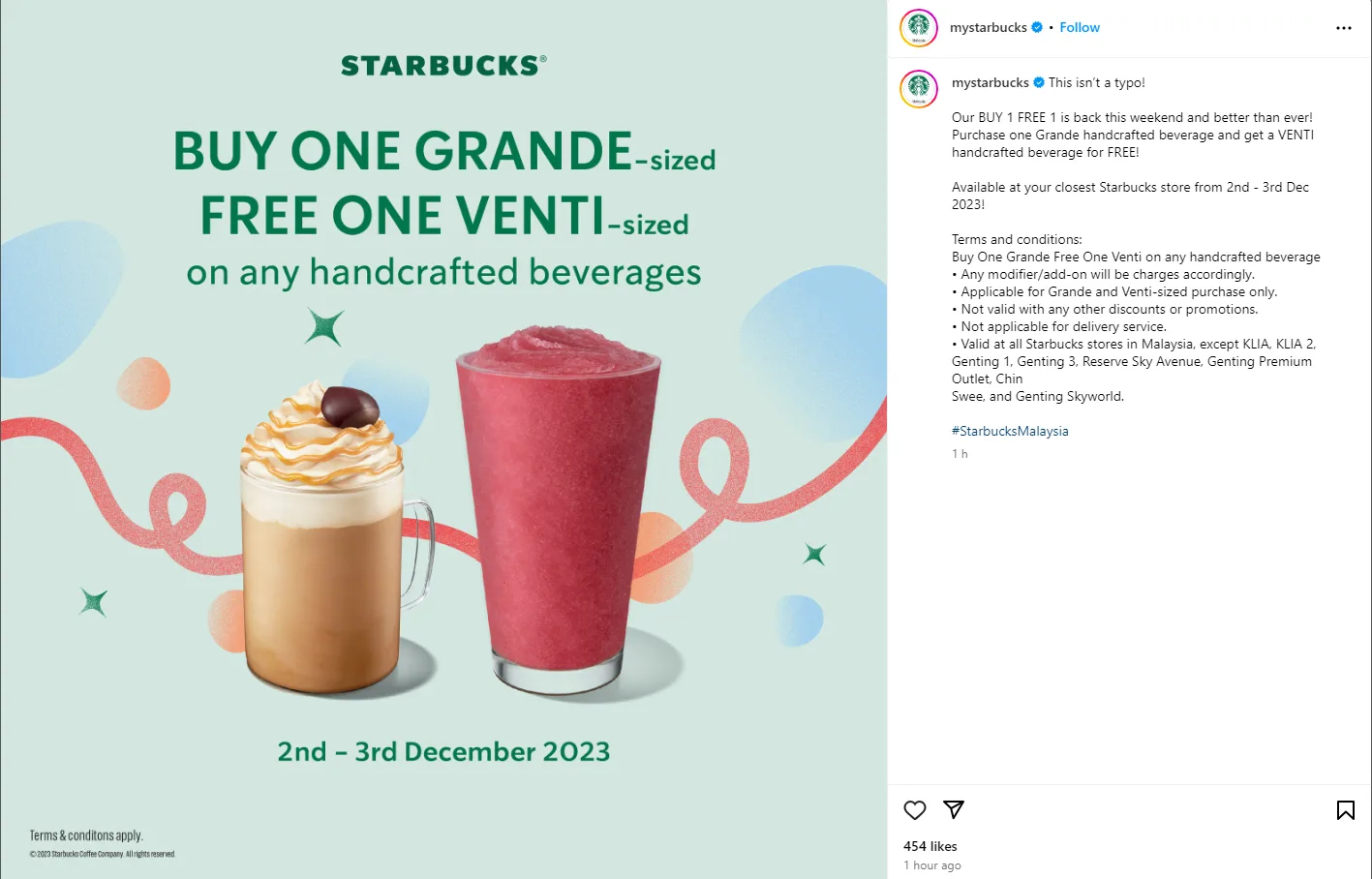 For the past few weeks, Starbucks Malaysia has been promoting the Buy 1 Free 1 promotion – which is usually a hot favourite among coffee addicts and casual drinkers alike. However, for this weekend, Starbucks upping the ante.