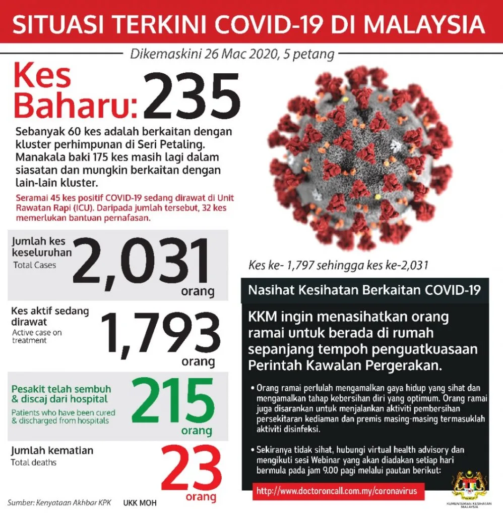 As at time of writing, Malaysia has recorded 2031 cases of Covid-19 infections, with 23 deaths.