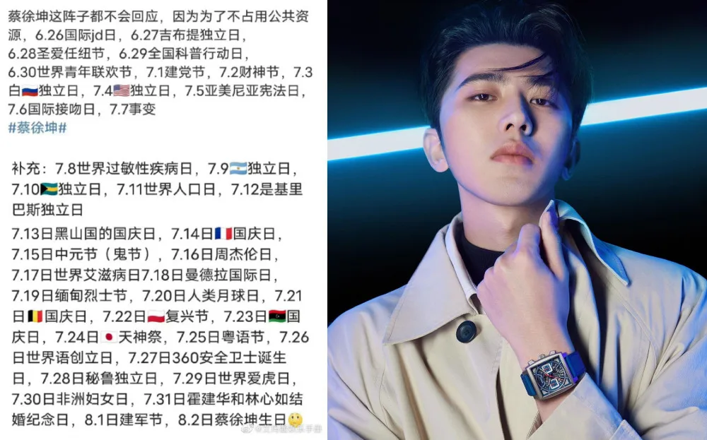 Since then, the artist has been keeping mum about the issue. This has pushed netizens to ponder his silence, with some suspecting he is “reluctant to take up public (attention)“. Someone even released a list of significant holidays and festivals since 26th June, which included Jay Chou Day and Wallace Huo (霍建華)’s wedding anniversary, claiming this was why he was staying mum.