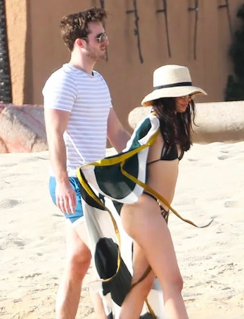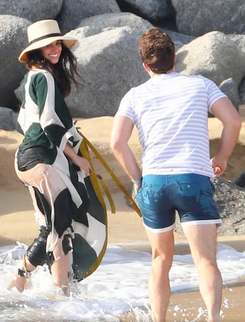 The couple held hands as they enjoyed a long walk along the beach and lip-locked several times. “Lots of PDA and smiles,” a source told E News!